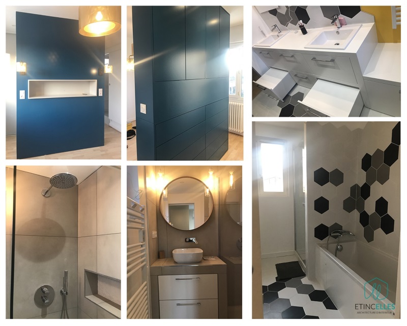 Julie et Marie ont conduit la rénovation de salles de bain ainsi que la création d'un espace dressing dans la chambre parentale.