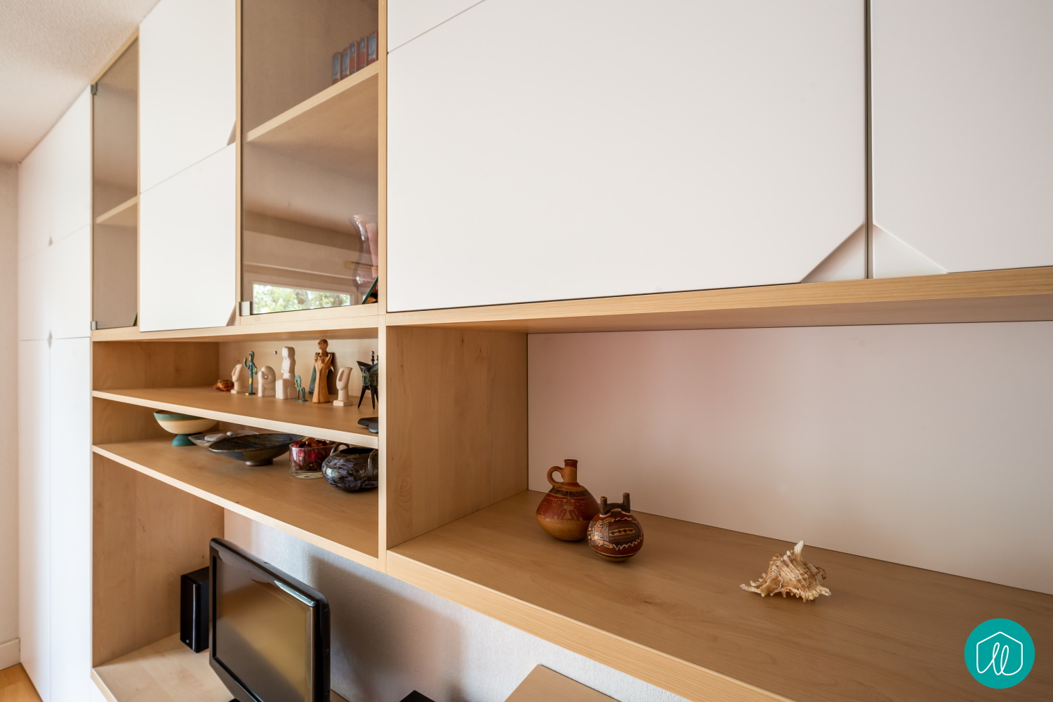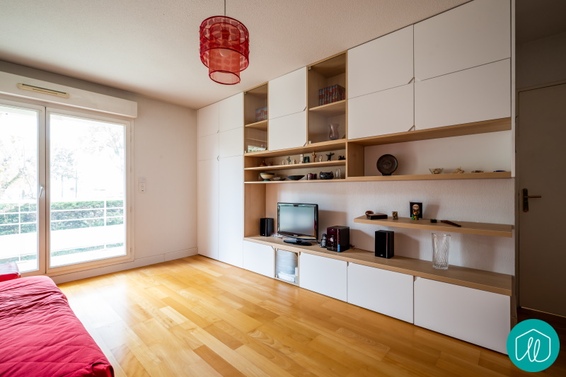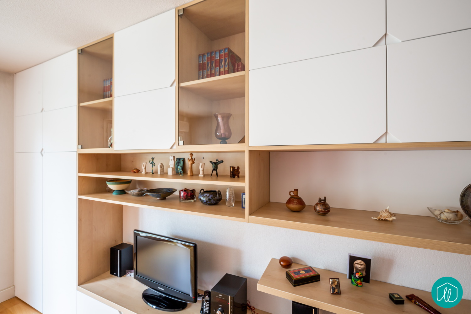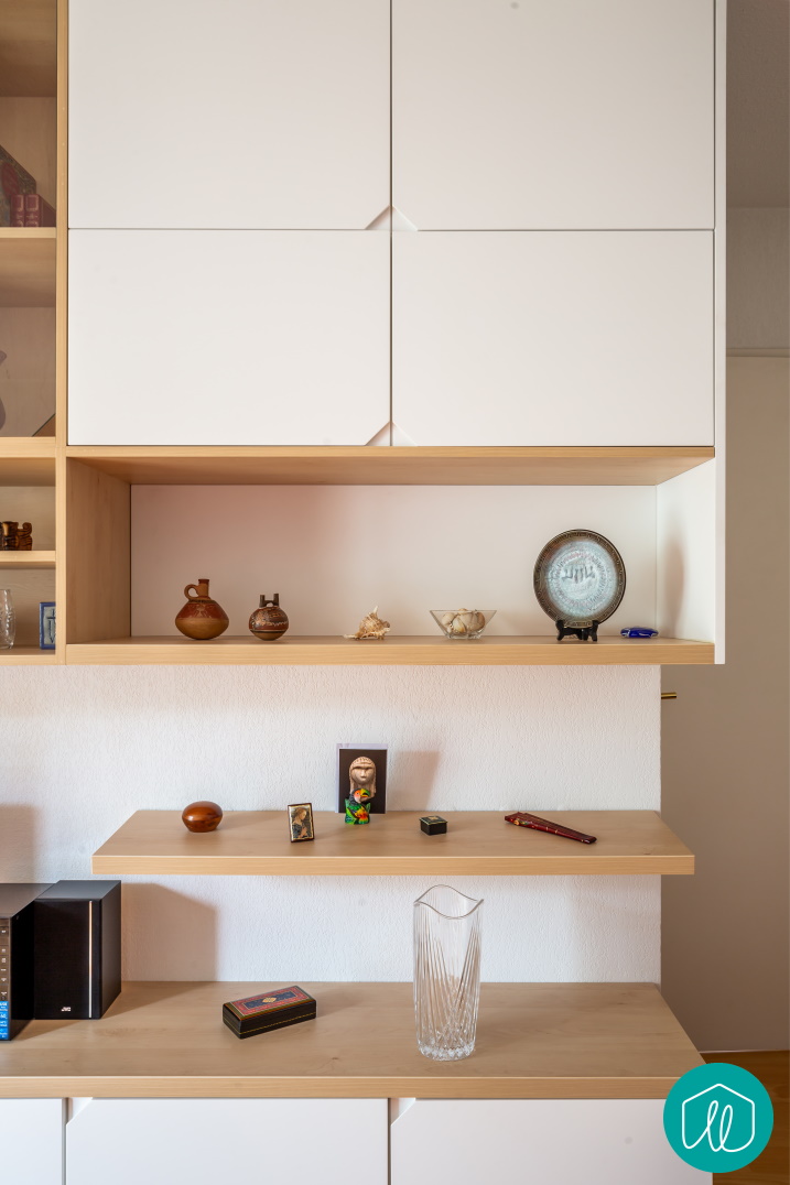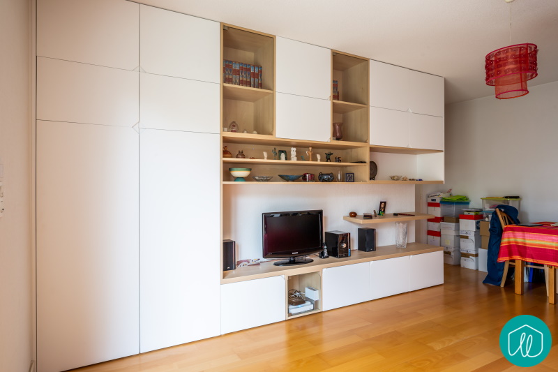 Un salon existant qui manquait de rangement, d’harmonie et de fonctionnalité.