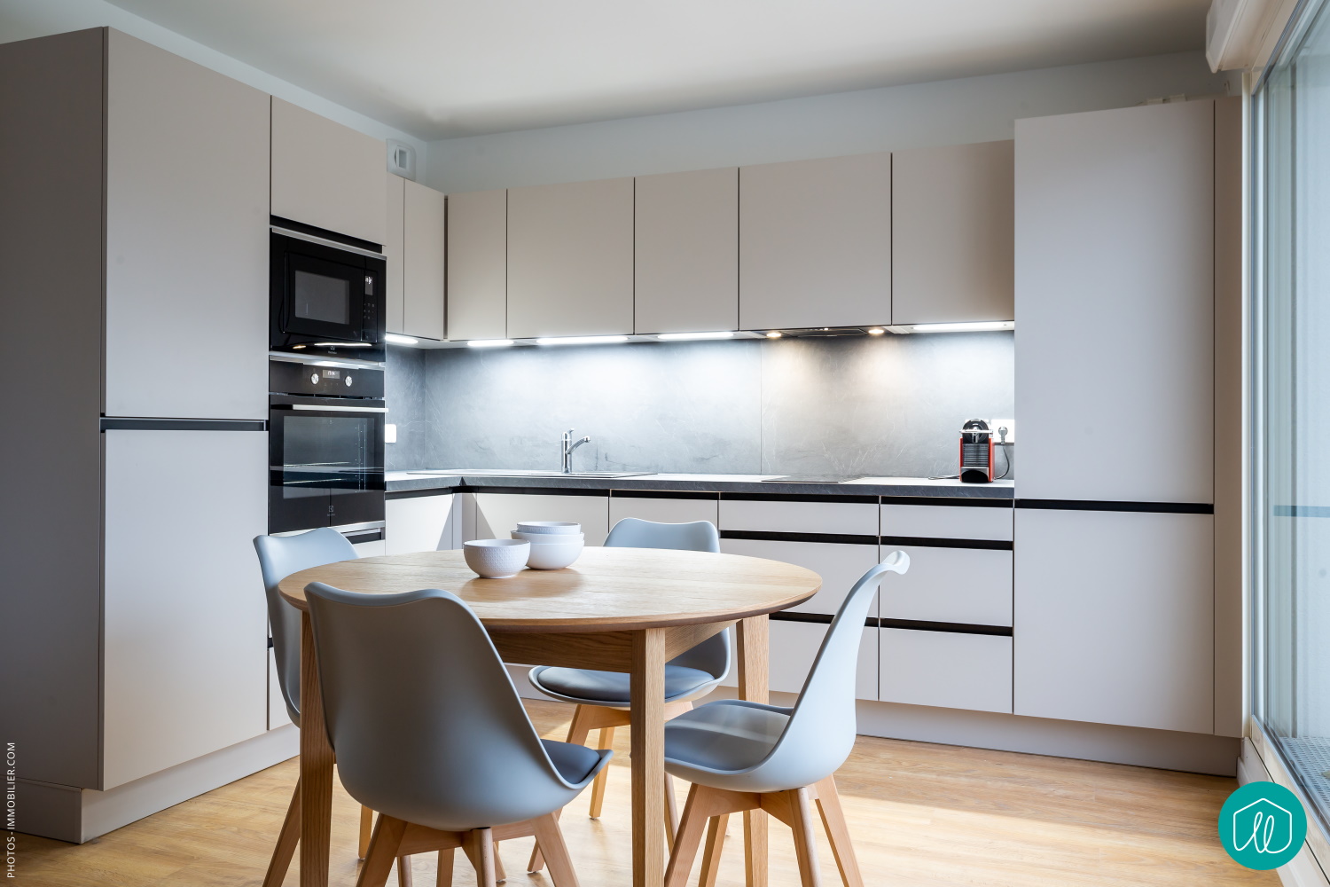 • - Décoration de l’appartement, installation des meubles de salle à manger, salon et luminaires