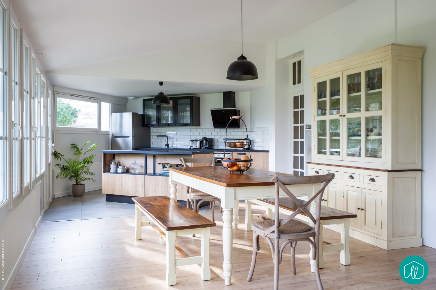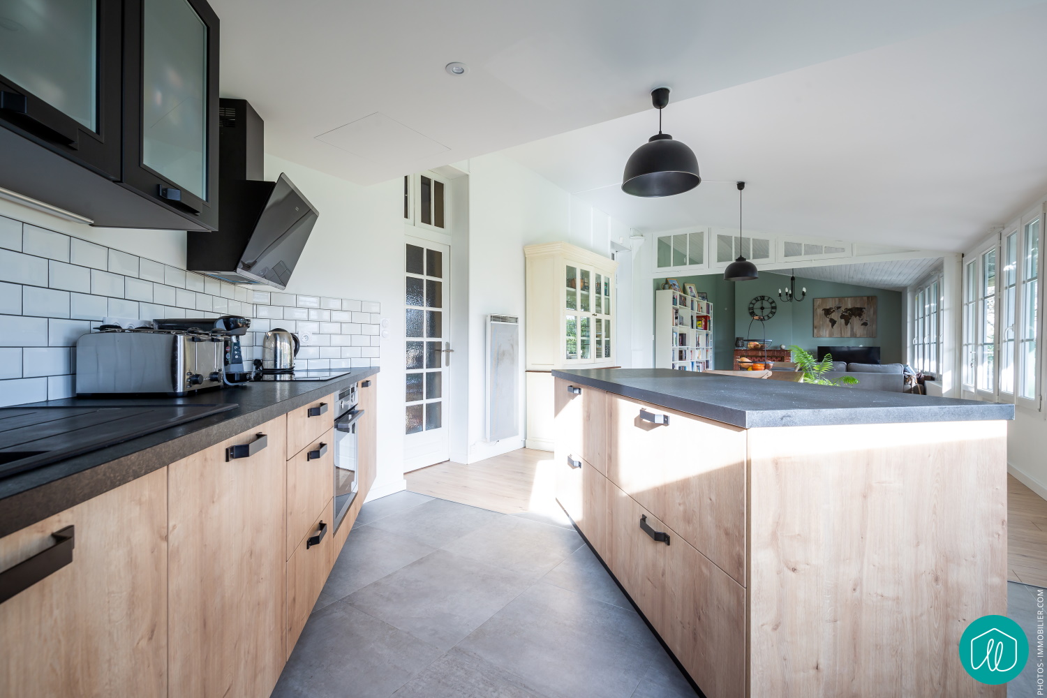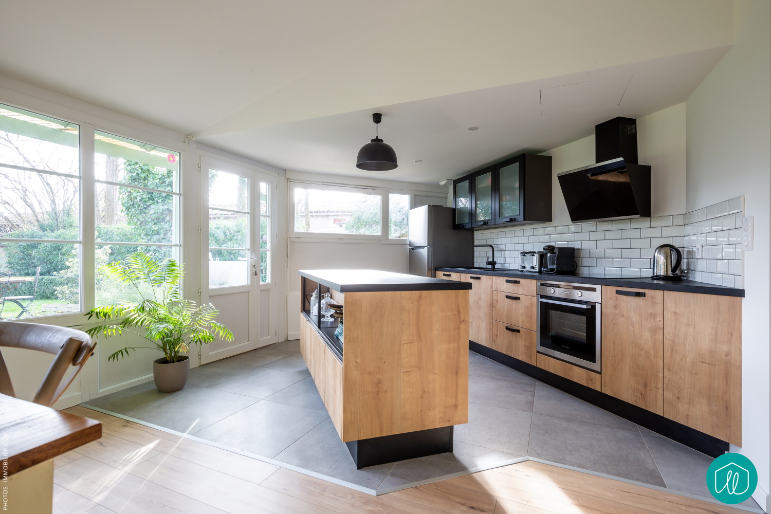 Agrandir la cuisine, la rendre fonctionnelle, optimiser et lui donner un style industriel/végétal. Apporter une ambiance cosy, lumineuse. L’objectif était d’allier les matières brutes à une tonalité végétale et reposante.