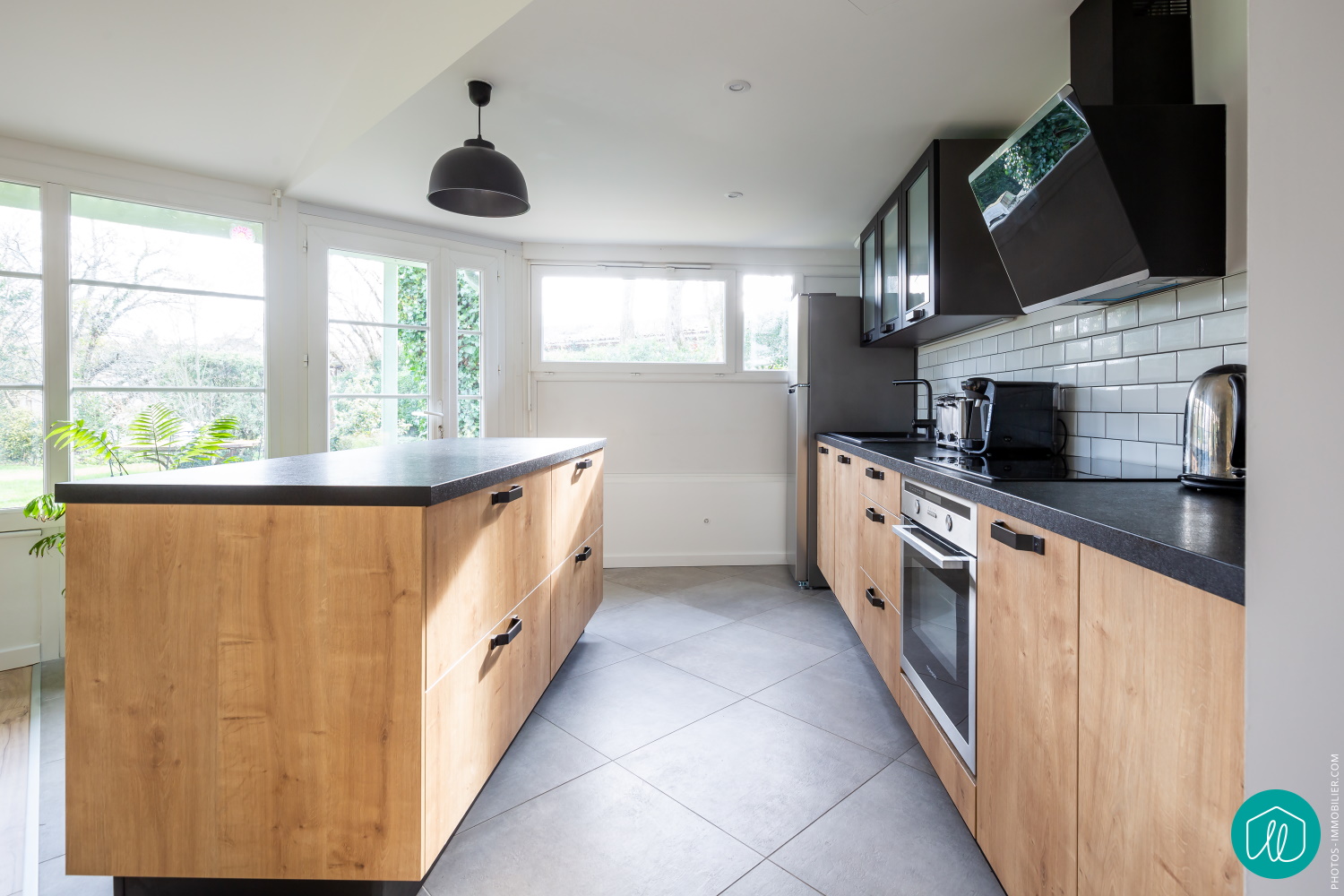 La cuisine existante manquait de rangement, plan de travail, la pièce était en mauvais état. Le séjour avait besoin d’être repeint et les sols remplacés.