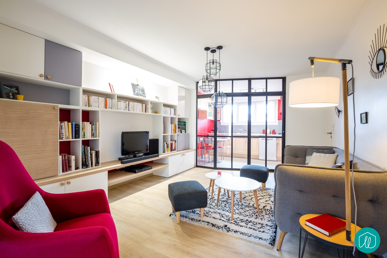 La décoration et les meubles ne convenaient plus aux propriétaires des lieux. Ils souhaitaient un mobilier fonctionnel et adapté à leur besoin de rangements, créer un coin bureau et un meuble TV.