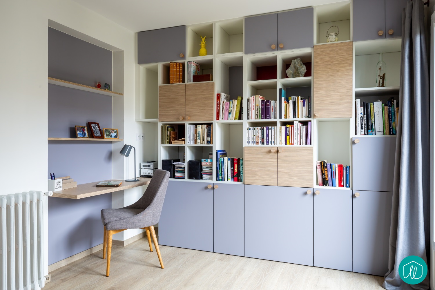 • - Création d’un rangement bureau, adapté à la collection de livres